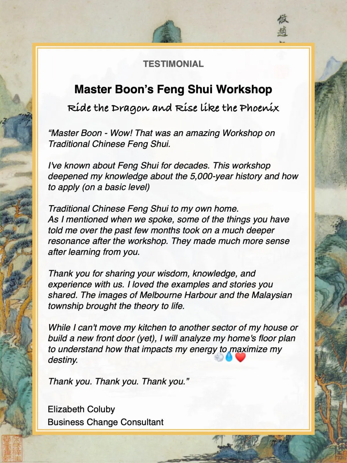 Pull back the curtain. Understand why pop-Feng Shui fails and what it takes to truly transform your space. Discover how to go deeper—and how Master Boon can guide you there.