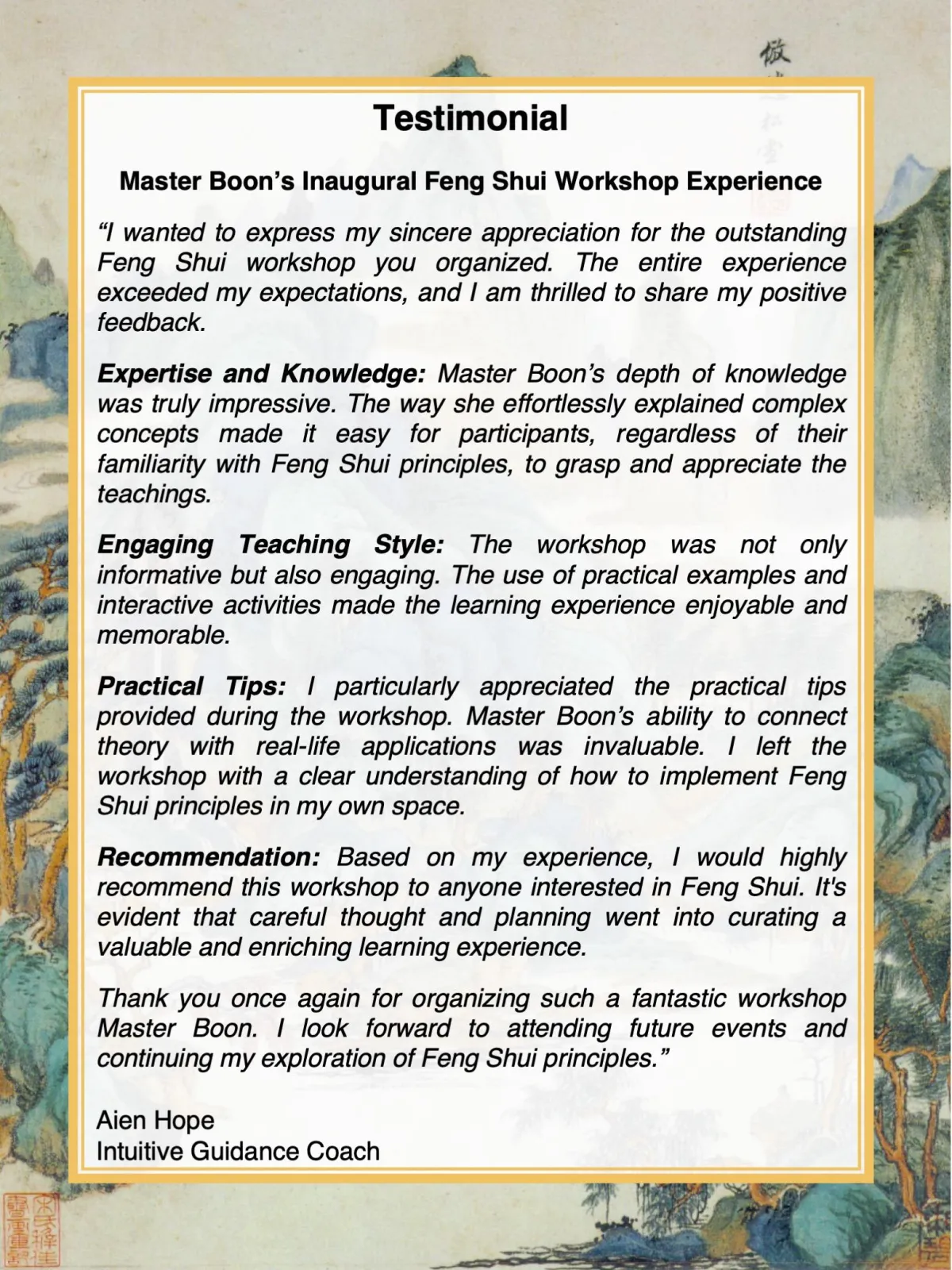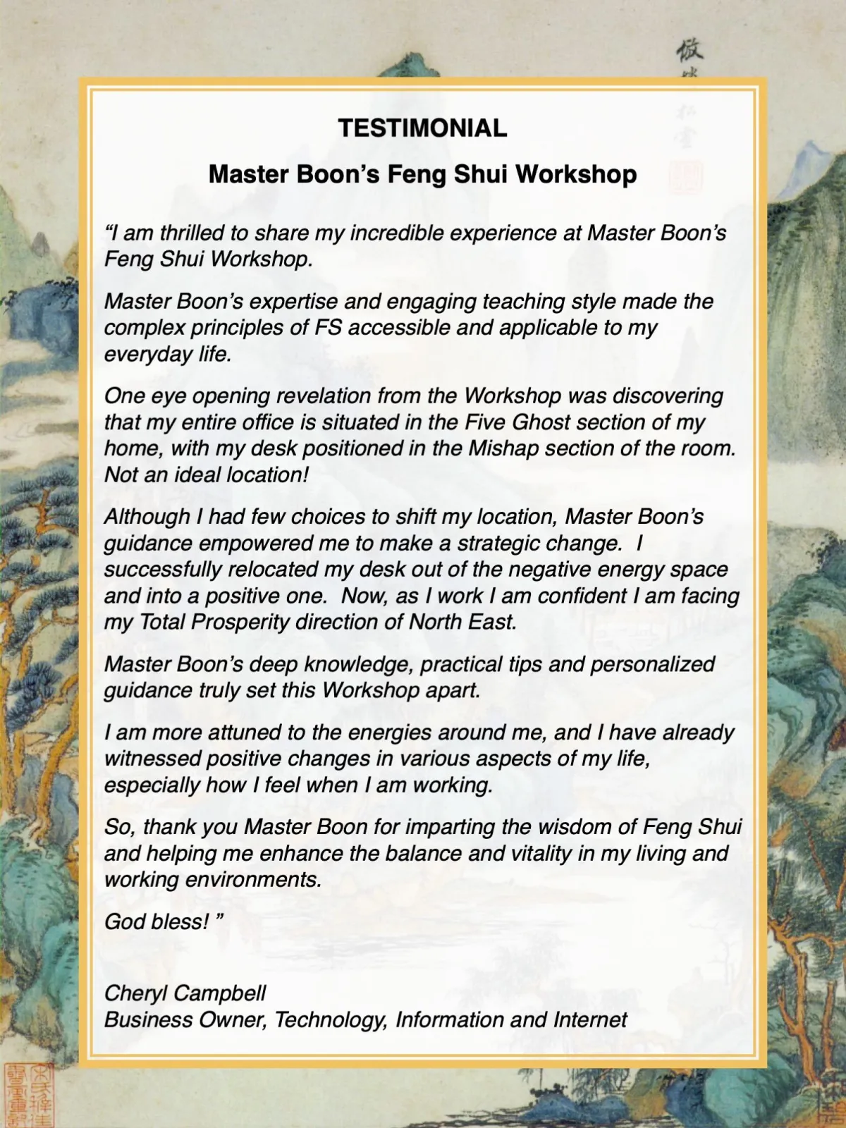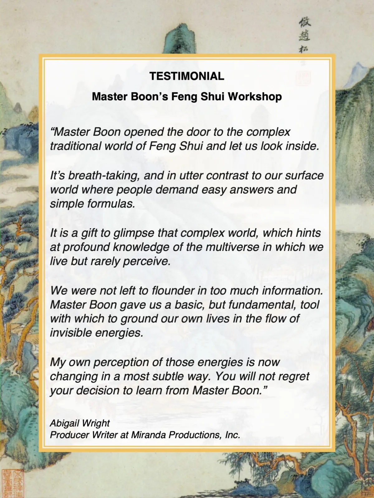 This is authentic, Traditional Feng Shui, once used by emperors, now brought to you by Master Boon, the only Western student of Grandmaster Yap to be conferred the lineage title of Master.